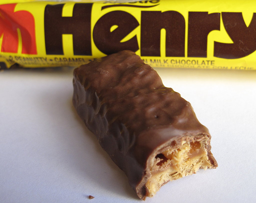 - Which food do you think has the most calories? How did you come to this conclusion? Probably an O Henry chocolate bar. (If you're not from Canada, you may not know what I'm talking about). I'm guessing these would have insane calories because it has peanuts, which are very calorie dense, fudge, and chocolate. But then again, there may be other foods out there with even more calories. Who knows.